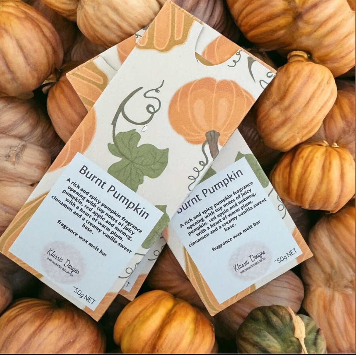 A rich and spicy pumpkin fragrance opening with top notes of juicy pumpkin, red apple and nutmeg, with a heart of warm plum, cinnamon and a creamy vanilla sweet base.