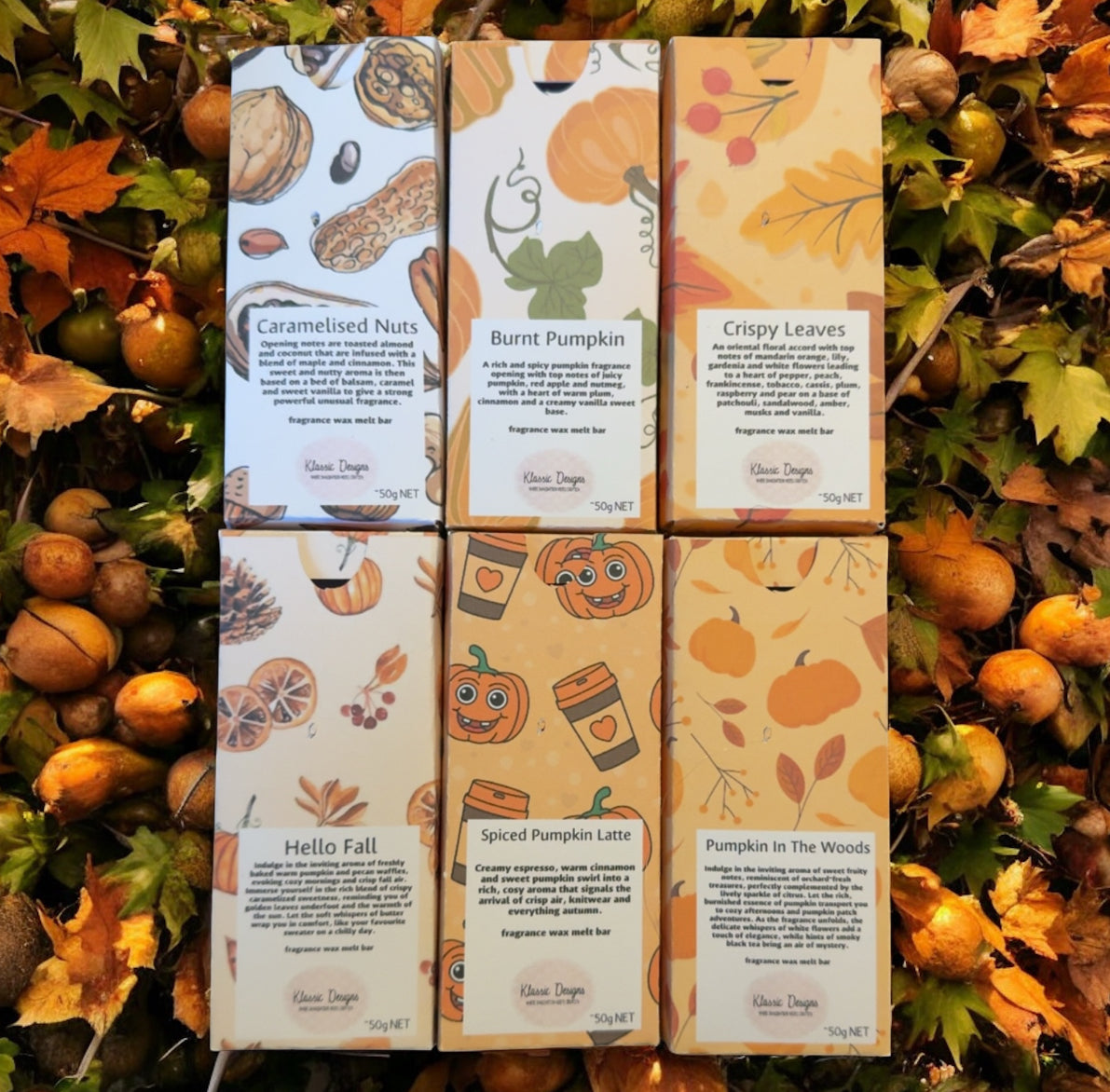 Burnt Pumpkin - A rich and spicy pumpkin fragrance opening with top notes of juicy pumpkin, red apple and nutmeg, with a heart of warm plum, cinnamon and a creamy vanilla sweet base.